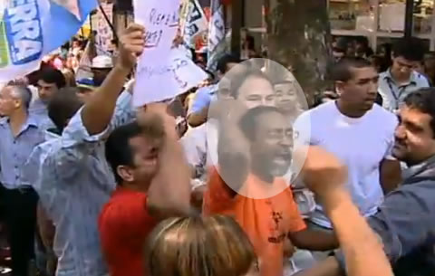 À esquerda e à direita dois dos amigos de Lula que participaram da agressão ao Serra. Esse da direita, conhecido como "Mata-Mosquito" é candidato derrotado do PT para deputado estadual pelo Rio |